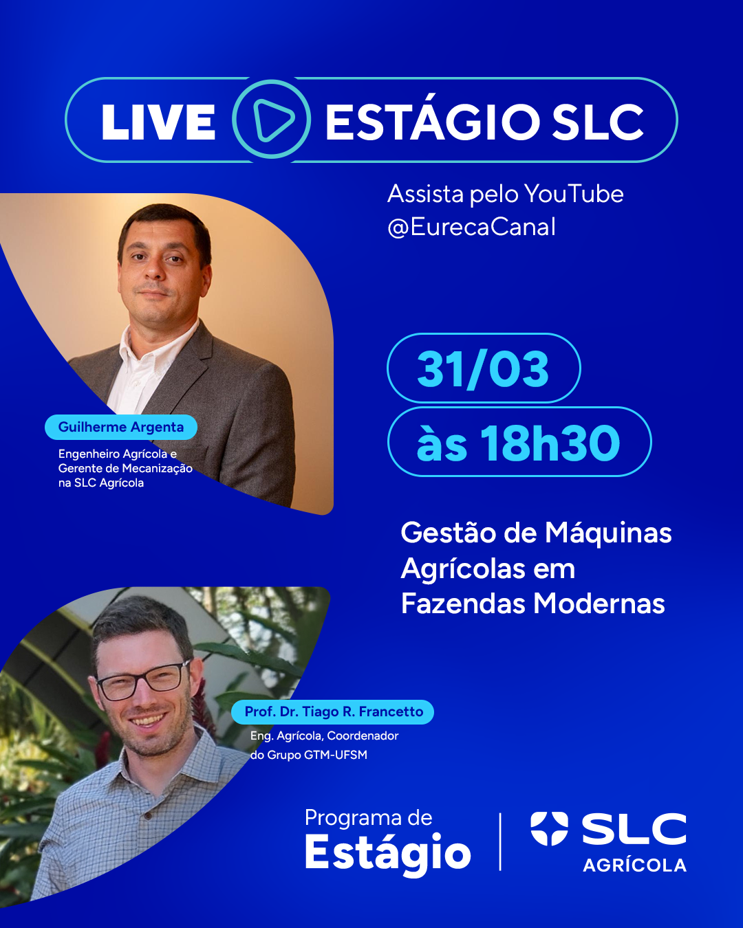 O Grupo de Tecnologia em Máquinas Agrícolas (GTM), em parceria com a SLC Agrícola, realizará no dia 31 de março, às 18h30, uma live especial com o tema "Gestão de Máquinas Agrícolas em Fazendas Modernas".